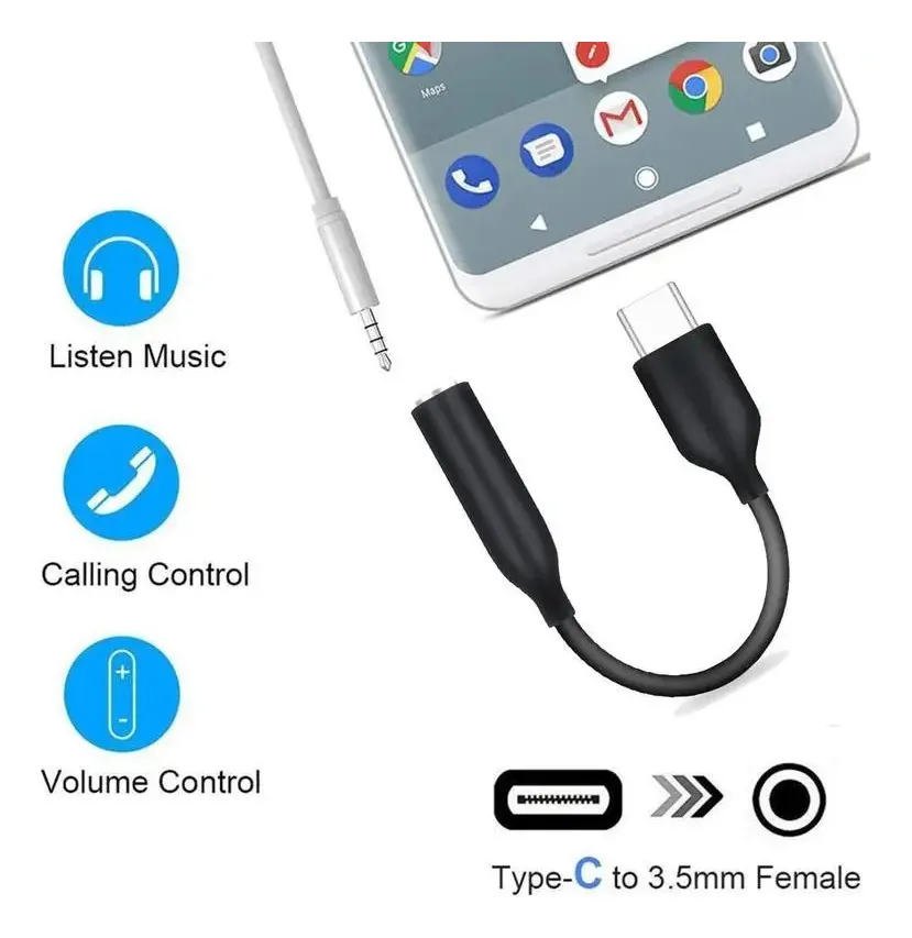 El Adaptador USB-C a Jack 3.5 mm hembra (10 cm) te permite conectar cualquier auricular, manos libres o micrófono con plug tradicional a smartphones modernos sin puerto de audio (Xiaomi, Samsung, Huawei, Motorola, Google Pixel y más*).