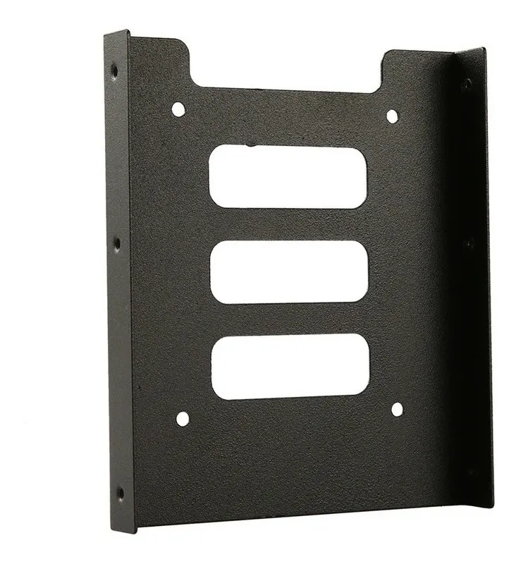 Adaptador de bahía 2.5” a 3.5” para SSD o HDD. Fabricado en metal, compatible con la mayoría de PCs. Incluye tornillos para montaje.