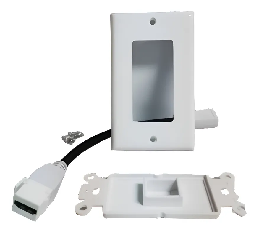 Adaptador de pared diseñado para instalaciones limpias, ordenadas y profesionales en muros o cajas eléctricas tipo Chuqui. Permite extender y organizar conexiones HDMI hembra–hembra mediante cableado interno, ideal para salas multimedia, oficinas, televisores instalados en muro, proyectos de domótica o home theater.