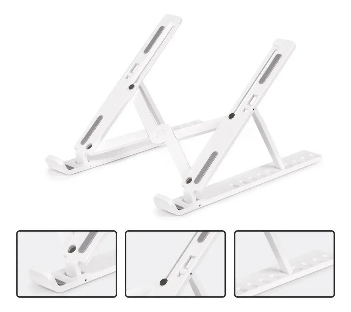 Optimiza tu postura y mejora la ventilación de tu equipo con este soporte portátil y plegable para notebooks y tablets. Cuenta con 7 niveles de altura ajustable, superficie antideslizante con almohadillas de silicona y diseño ergonómico para una experiencia más cómoda al escribir, trabajar, estudiar o jugar. Compatible con dispositivos de 2″ a 15.6″, incluyendo MacBook, ThinkPad, Surface, Chromebook, iPad Pro y más.
