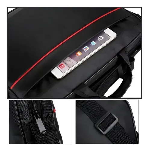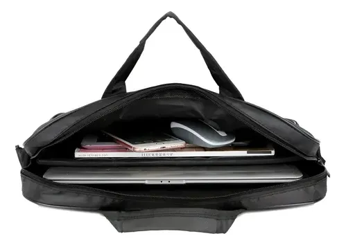 Bolso maletín negro clásico para notebooks y laptops de hasta 15.6″: interior acolchado de alta densidad que absorbe golpes y evita rayones, perfecto para llevar tu equipo a la oficina, universidad o viajes con total seguridad.