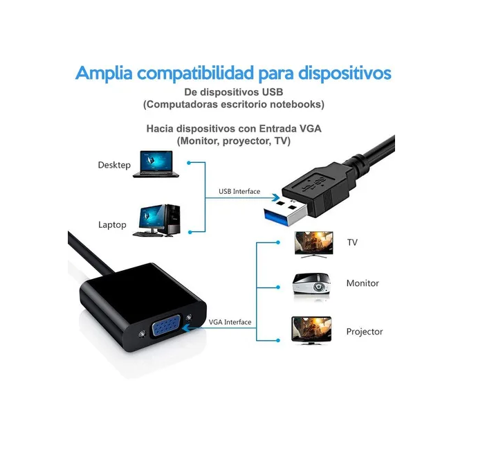 Cable Adaptador Usb 3.0 Macho A Vga Hembra