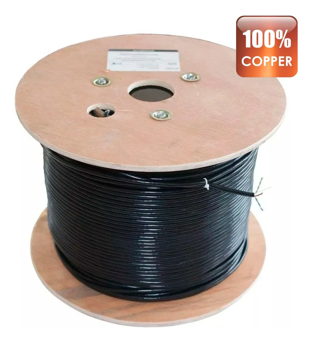 Para redes LAN, sistemas CCTV y otras aplicaciones eléctricas de baja tensión exterior. Tipo alambre AWG 23, material cobre 100%, doble chaqueta, color negro.