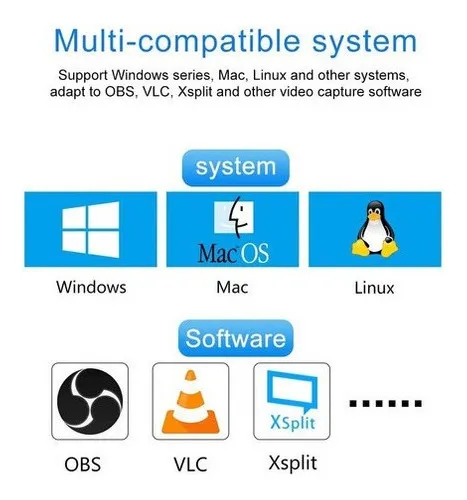Funciona con OBS, Streamlabs, XSplit, Zoom, PotPlayer, VLC, Amcap y cualquier software UVC/UAC