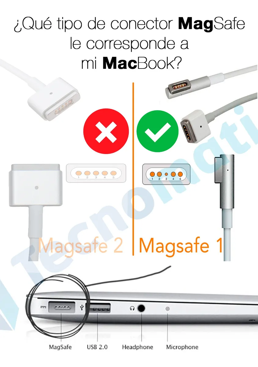 Modelo del cargador Cargador para MacBook Air 14.5V 45W Conector L (Magsafe) – Tecnomati