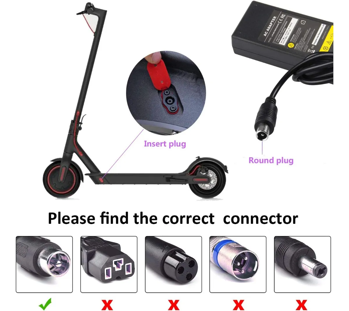 Modelos compatibles: Xiaomi Mijia M365, Segway Ninebot ES1, ES2, ES4, Compatible también con scooters Bird, Lime, Lime-S, Jump, Spin, entre otros que utilicen este tipo de cargador