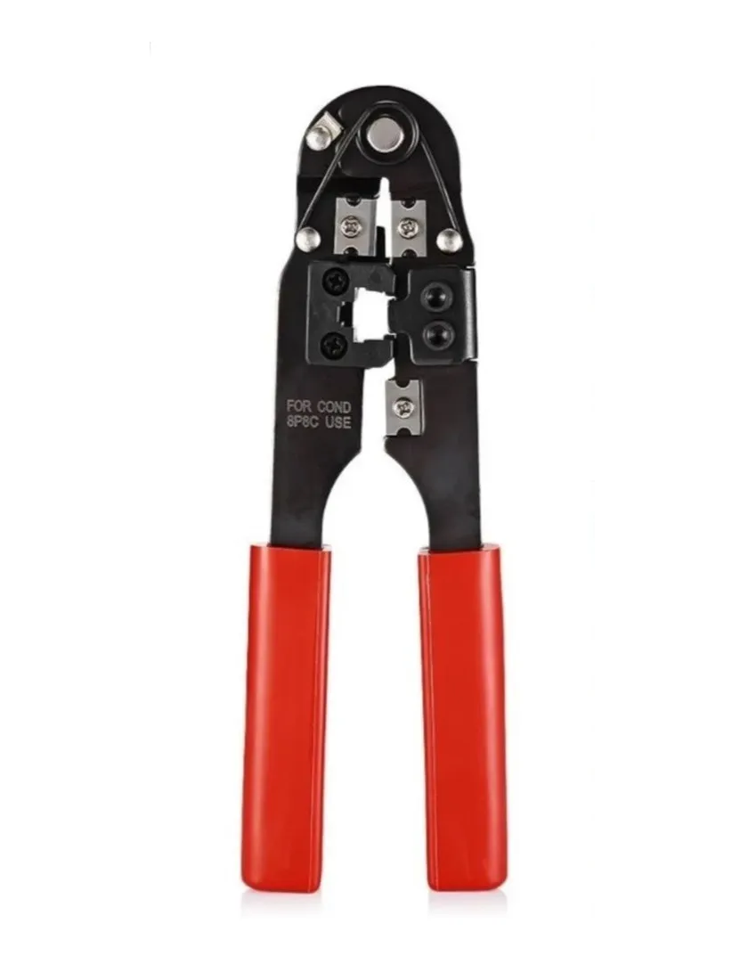 Herramienta crimpeadora para hacer cables de red, permite cortar y crimpear fácilmente cables de red UTP e instalar sus correspondientes conectores RJ45. Indispensable para Técnicos Instaladores de Redes y muy útil en el hogar.