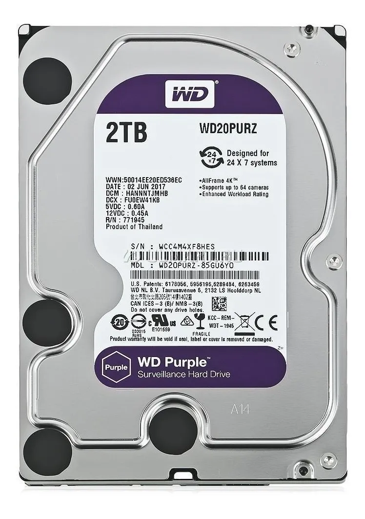 DISCO DURO WD PURPLE 2TB PARA DVR / NVR DE VIGILANCIA