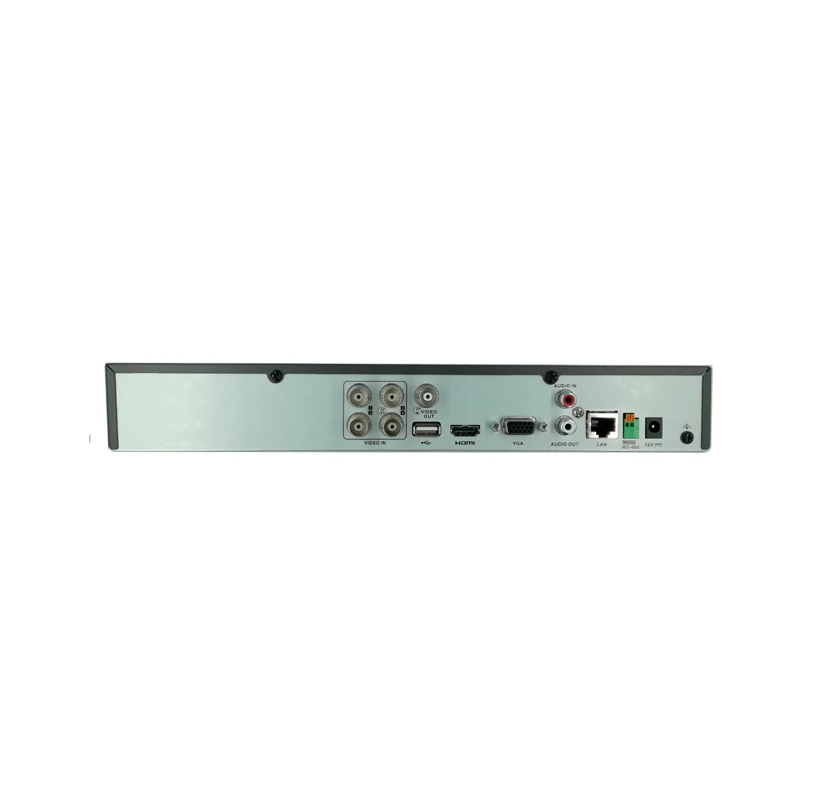 DVR Hikvision iDS-7204HQHI-M1/XT de 4 canales, compatible con cámaras hasta 5MP Lite y tecnología AcuSense para detección inteligente de personas y vehículos. Compresión H.265 Pro+, audio vía coaxial, salida HDMI Full HD