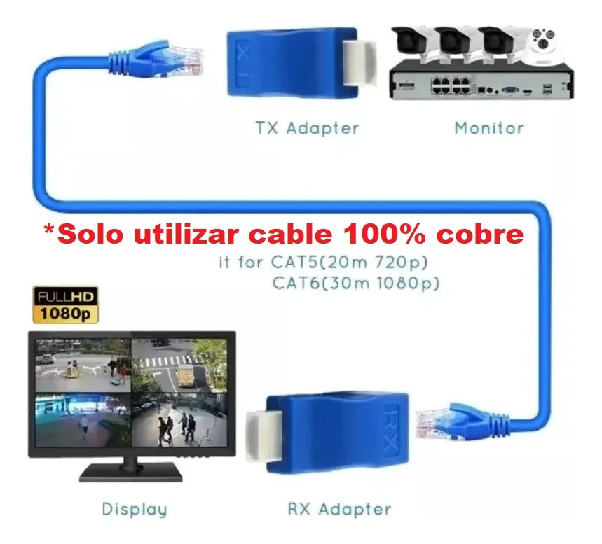 Permite extender señal HDMI usando cable UTP CAT5e o CAT6. Ideal para hogares, oficinas y videovigilancia. Alcanza 1080p hasta 30 m con CAT6 certificado 100% cobre. Incluye transmisor y receptor plug and play. Compatible con HDMI 1.4, 3D y múltiples resoluciones. Solución económica y eficiente.