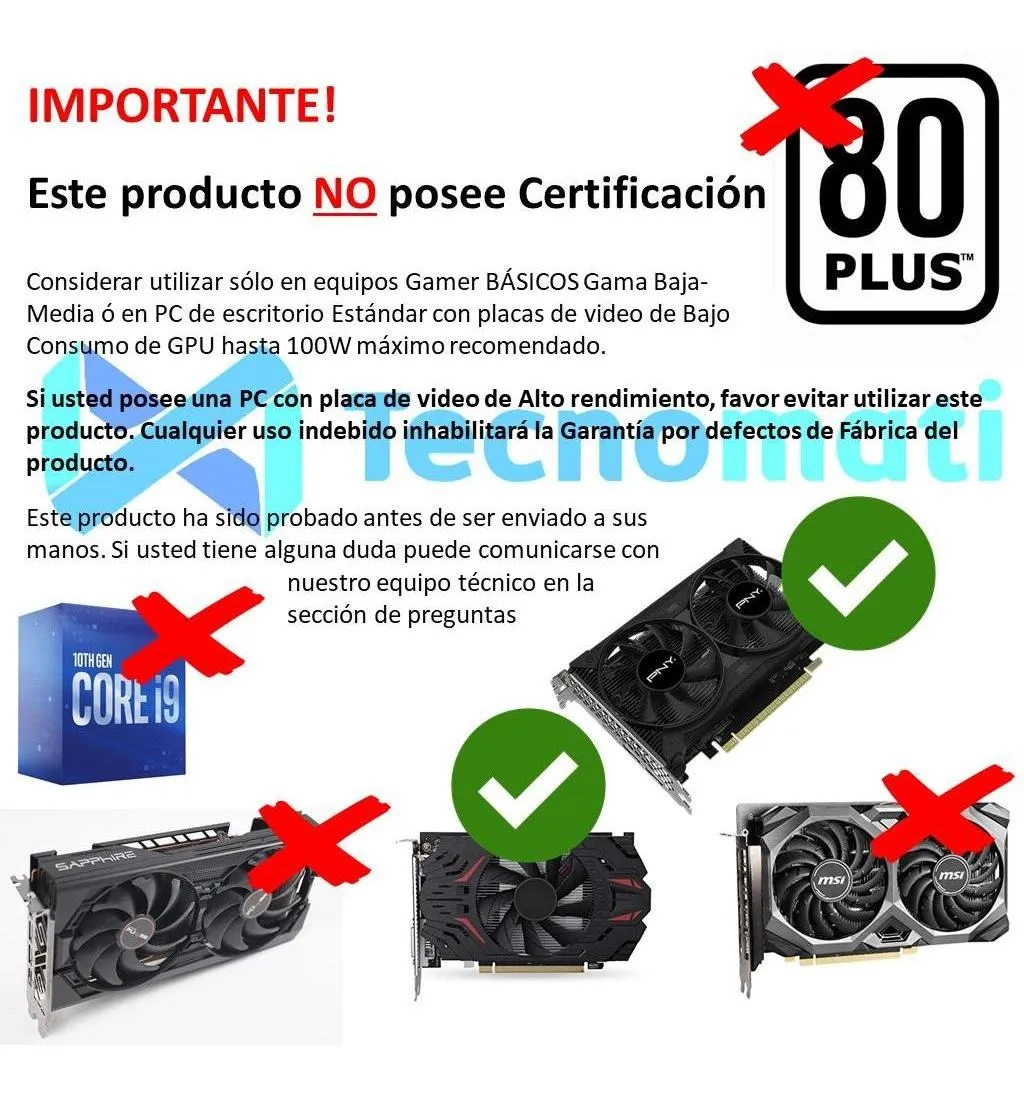 | Modelo | Fuente de Poder 750w ATX 24 pines +6 pines PC Gamer Estandar – tecnomati |