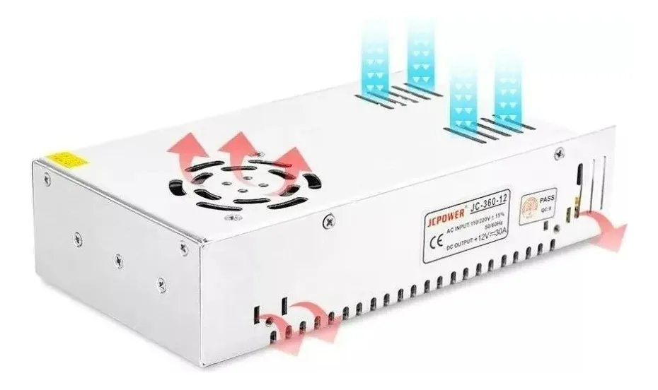 FUENTE DE PODER SWITCHING DE 12V 30A 360W. Adaptador AC a DC con corriente máxima de 30A. Ideal para sistemas CCTV y cintas LED.