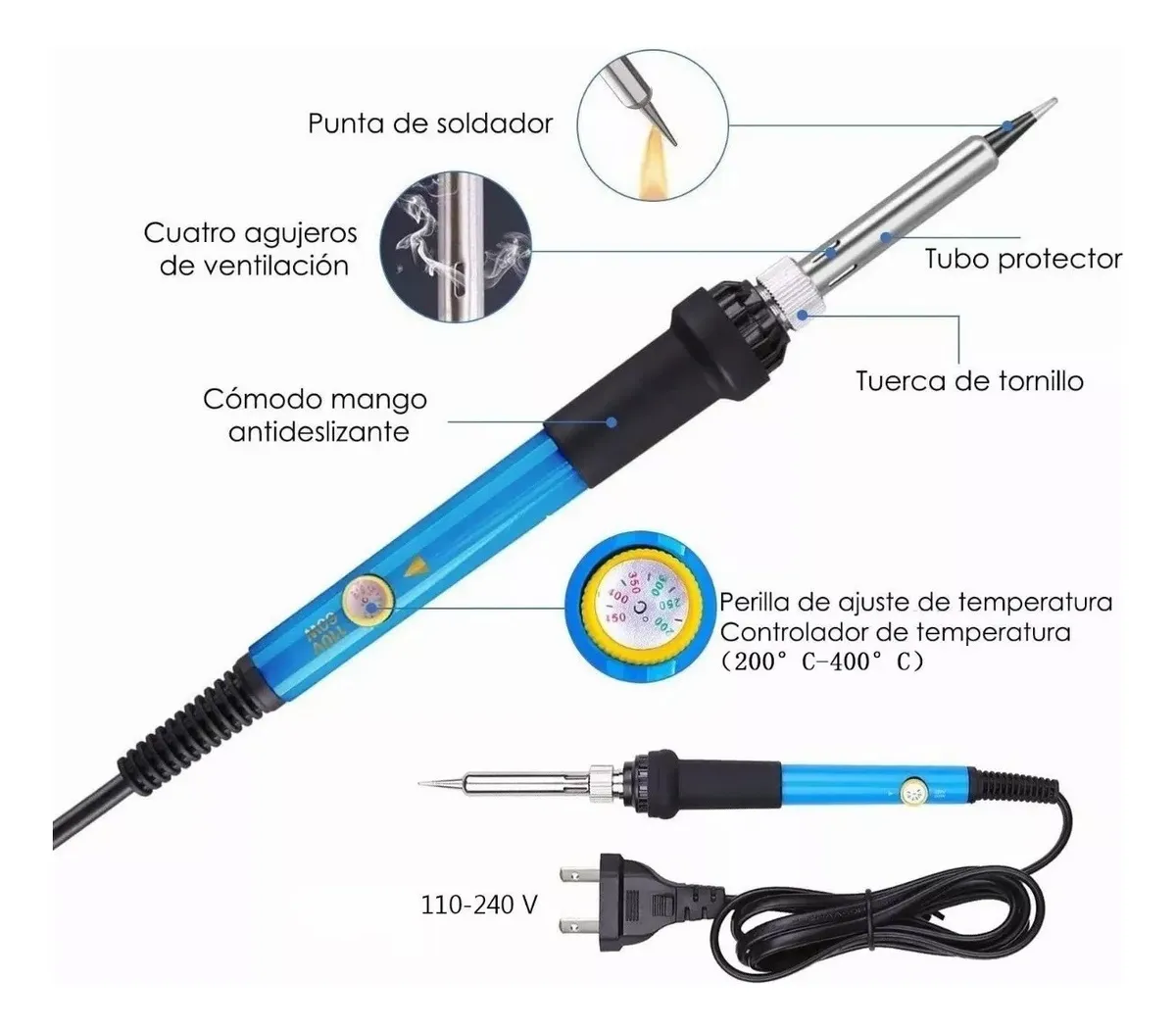 | Modelo | Kit Cautin tester 60w Para Soldar Eléctrico Punta Tipo Lápiz Estaño |
