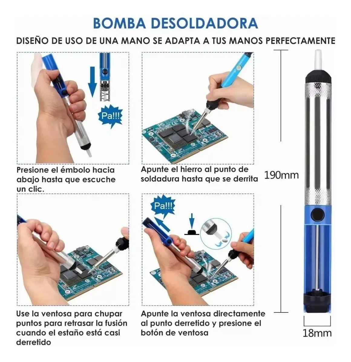 Este kit de cautín está diseñado para satisfacer todas tus necesidades de trabajo de soldadura. Viene con todos los accesorios necesarios, incluyendo un cautín, pinzas para desoldar, bombas de alambre de estaño, pinzas de punta de hierro y un mini pelacables. Estas herramientas hacen que tu trabajo de soldadura sea más fácil y cómodo.