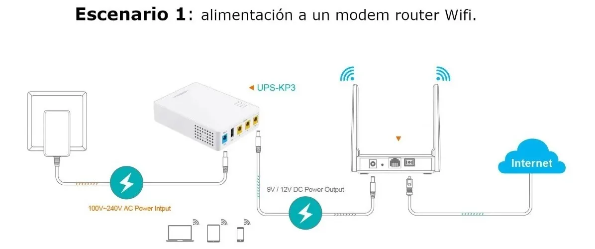 Protege tus dispositivos de cortes de energía. Compatible con router, módem, cámara de seguridad, smartphone y DSL. Permite usar la red en caso de corte.