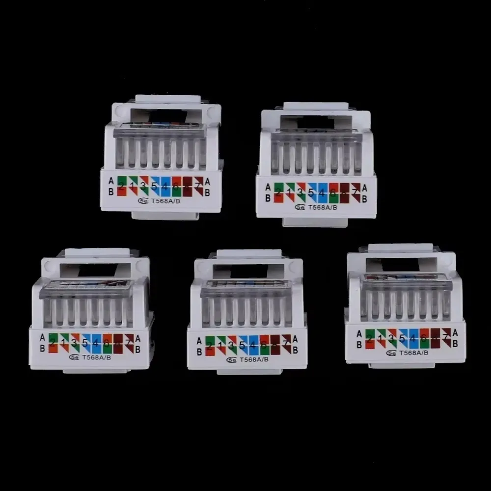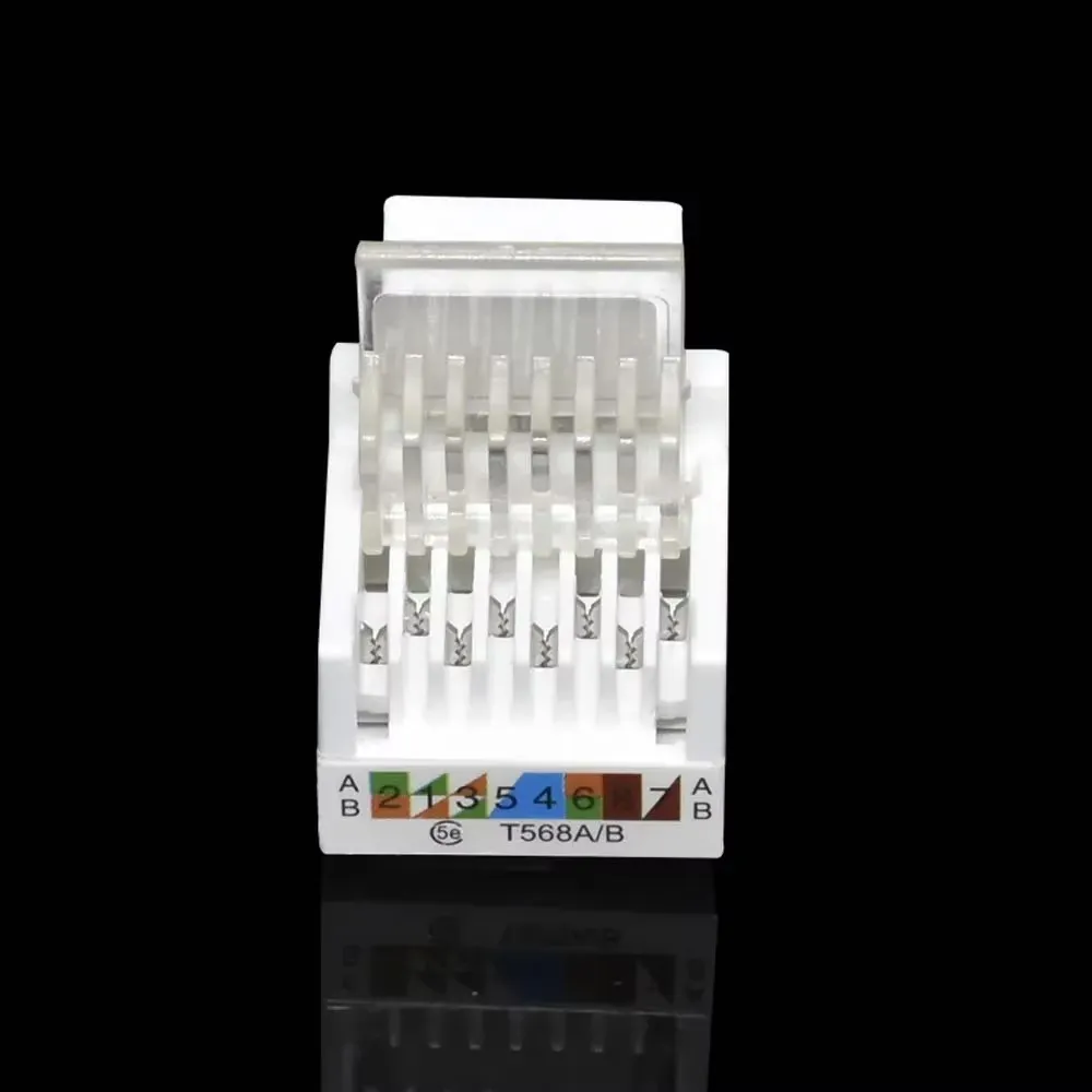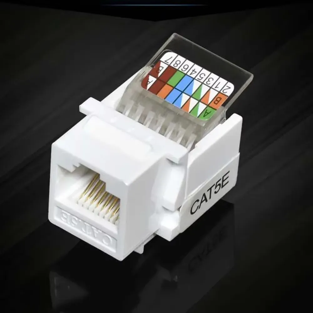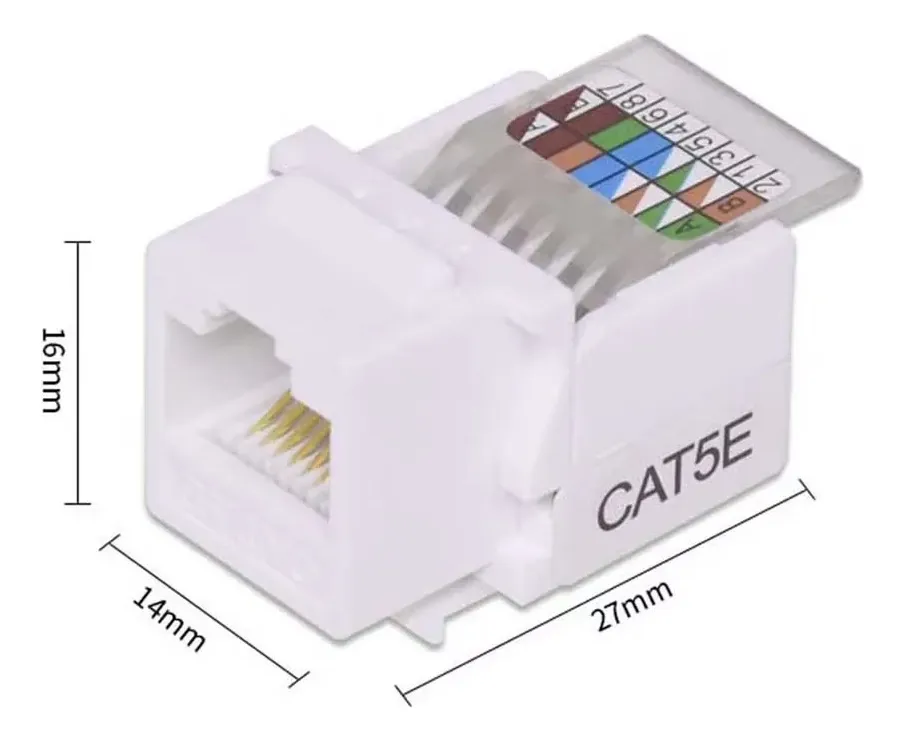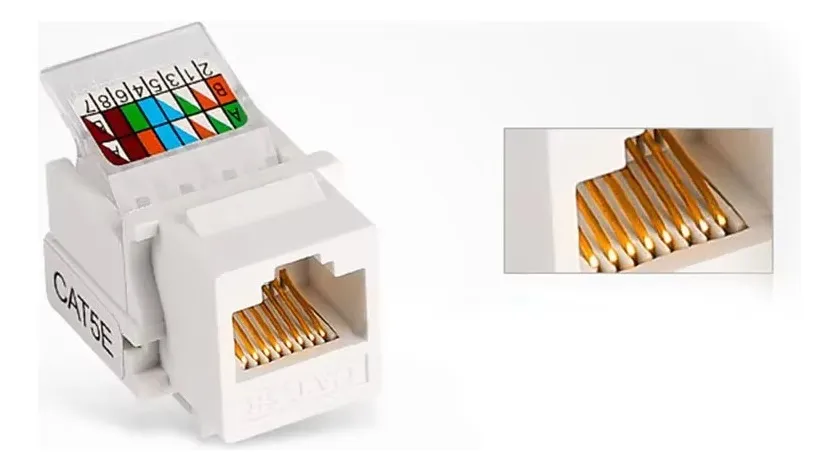 El Módulo RJ45 Cat5e hembra Keystone es la solución ideal para terminar cables de red UTP en faceplates, cajas de superficie o patch panels. Cumple estándar TIA/EIA-568-B, soporta hasta 100 Mbps (Fast Ethernet) y es 100 % compatible con cableado Cat5/Cat5e.