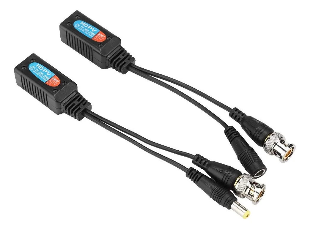Balun combinado de video + energía para sistemas de videovigilancia HD analógica. Permite transmitir señal de video y alimentación eléctrica por un mismo cable UTP (RJ45), simplificando la instalación y reduciendo costos en sistemas CVI, TVI, AHD y CVBS.