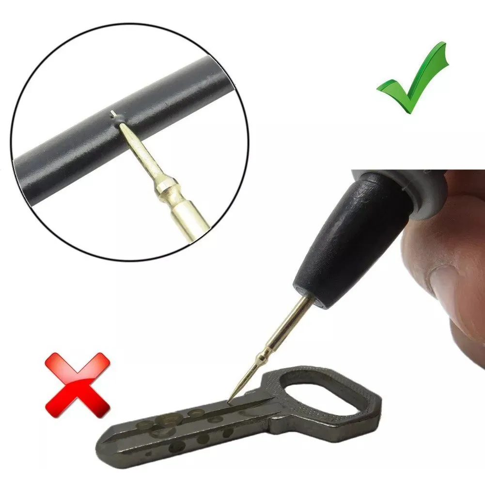 Realiza mediciones eléctricas con confianza y precisión usando este set de puntas de prueba para tester, compatible con la mayoría de multímetros del mercado. Diseñadas para trabajos en circuitos eléctricos, permiten acceder a puntos pequeños con facilidad gracias a sus puntas finas y de alta precisión.