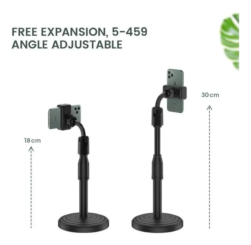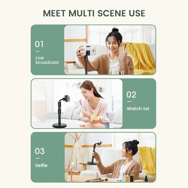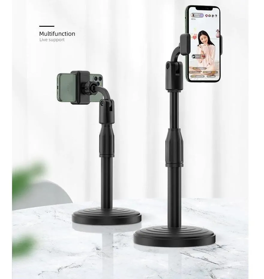Soporte multifunción ideal para ver videos, realizar videollamadas, transmisiones en vivo, estudiar o trabajar desde tu smartphone. Su diseño extensible, ajustable en altura y con rotación 360°, permite adaptar el ángulo perfecto tanto en modo vertical como horizontal.