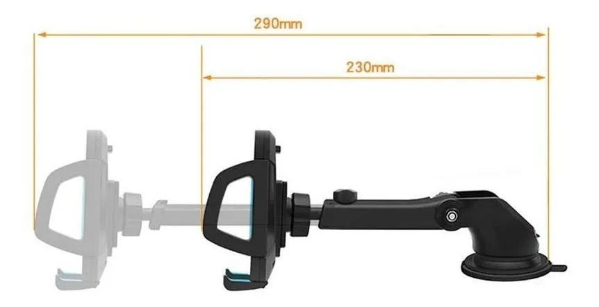 Este Porta Celular para Auto con ventosa extrafuerte y brazo extensible se fija en segundos sobre el parabrisas o cualquier superficie lisa del tablero. Su pinza ajustable abraza firme pero suavemente teléfonos de hasta 8 cm de ancho (compatible con iPhone, Samsung, Xiaomi, Motorola y casi todos los modelos con o sin funda).