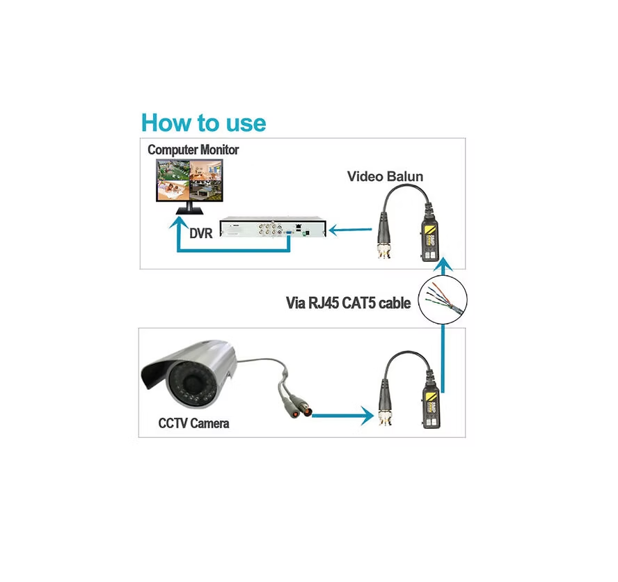 Video Balun 8MP de conector coaxial- rj45, con BNC enchapado en oro para proporcionar una mejor calidad de transmisión de señal hasta 8mpx y un trasmisor HD de larga, Compatible con cámaras de seguridad CCTV 0P/96072P/1080P/3MP/5MP/8MP AHD/TVI/CVI/CVBS. se recomienda ser utilizado con cables de categoría 5/ 5E y 6 para obtener un mejor funcionamiento